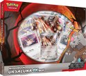 Pokémon – Bloodmoon Ursaluna ex Box – Trading Cards Laat het Bloodmoon beest los!Zijn blik doorboort de duisternis. De volle maan markering op zijn voorhoofd schijnt dieprood. Bloodmoon Ursaluna sluipt door de mistige uithoeken van het bos en trekt ervaren Trainers aan die op zoek zijn naar avontuur. Samen met zijn mede-nachtbewoners Hoothoot en Noctowl, verschijnt deze legendarische Pokémon hier als Pokémon ex. Klaar om zijn Seasoned Skill toe te passen in je volgende gevecht!De Pokémon TCG: Bloodmoon Ursaluna ex Box bevat: 1 foil promo kaart met Bloodmoon Ursaluna ex 2 foil kaarten met Hoothoot en Noctowl 1 oversize foil kaart met Bloodmoon Ursaluna ex 4 Pokémon TCG booster packs Een code voor Pokémon TCG Live